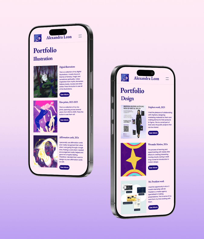 My name is Alexandra, I come from a visual storytelling background, studying illustration at Willem de Kooning Academy in Rotterdam, with experience in graphic design and a growing focus on UI design. I enjoy translating ideas into intuitive, visually engaging interfaces that balance creativity and usability, especially when design can influence how people interact with digital products.