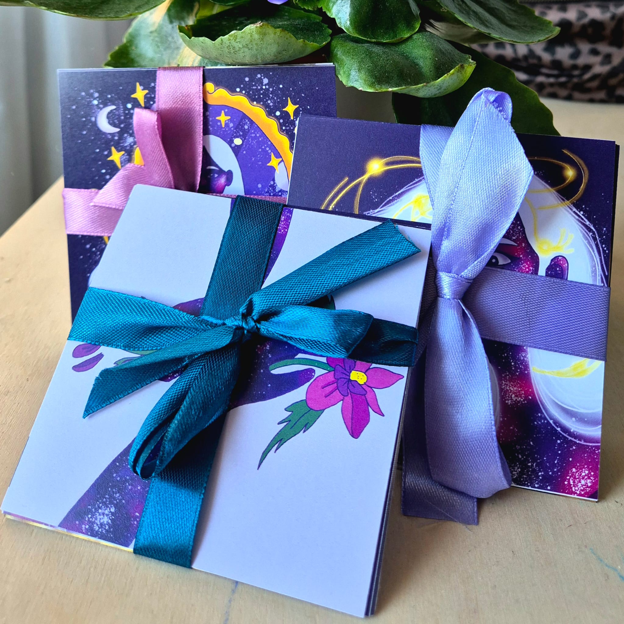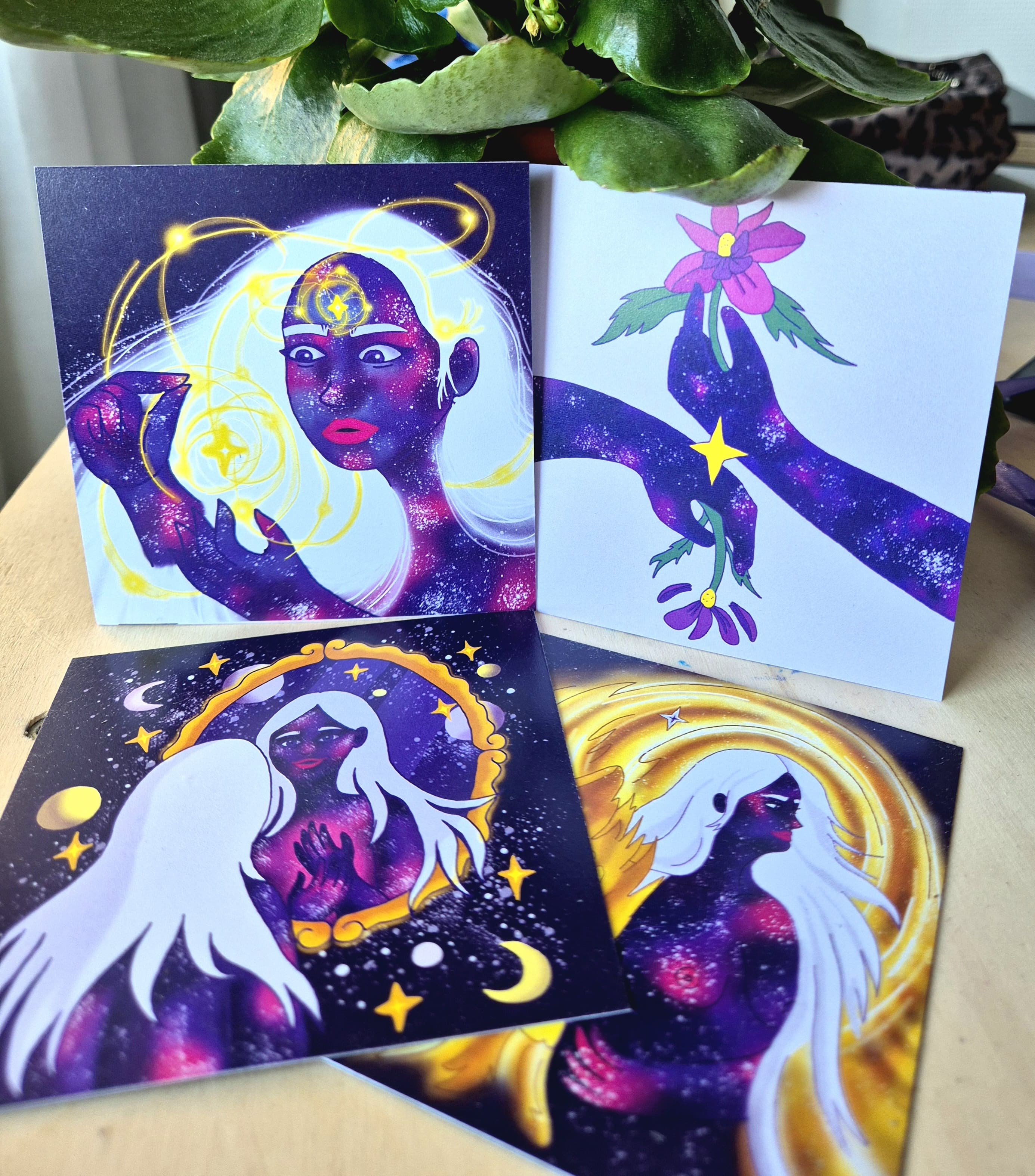 A lot of affirmations leverage people's belief in a higher power, and relate to the Universe as being sentient. This is what inspired the visuals for these cards