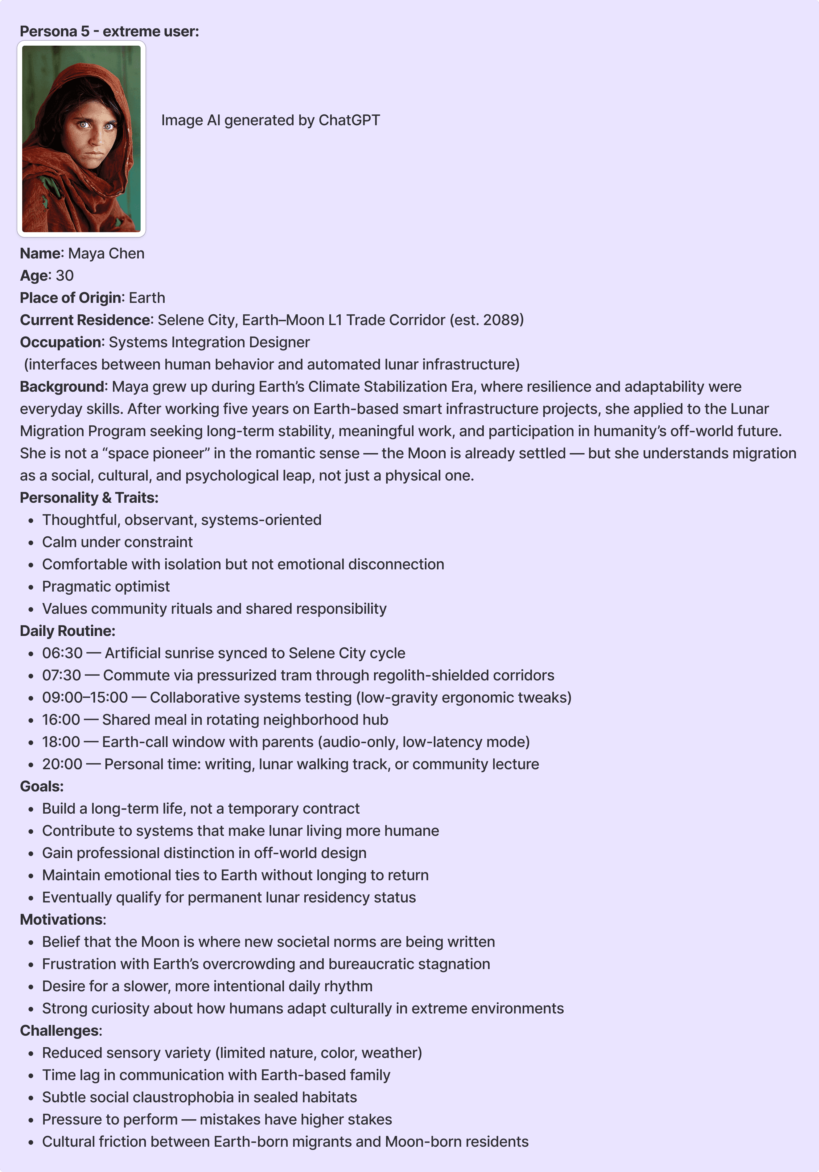 Draw upon logic, imagination, creativity, intuition, and systematic reasoning to explore what could be. Design innovations for the year 2055 with the potential to benefit a substantial part of the world. Apply design methods and process skills that are essential to innovation.