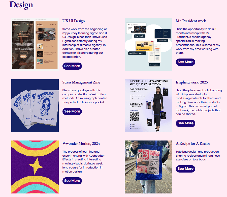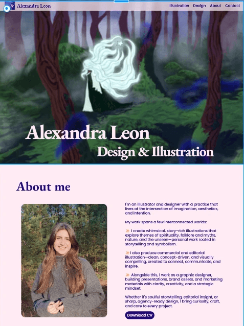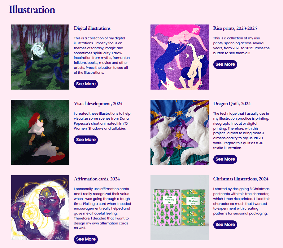 Portfolio section divided in 2 for Design and Illustration