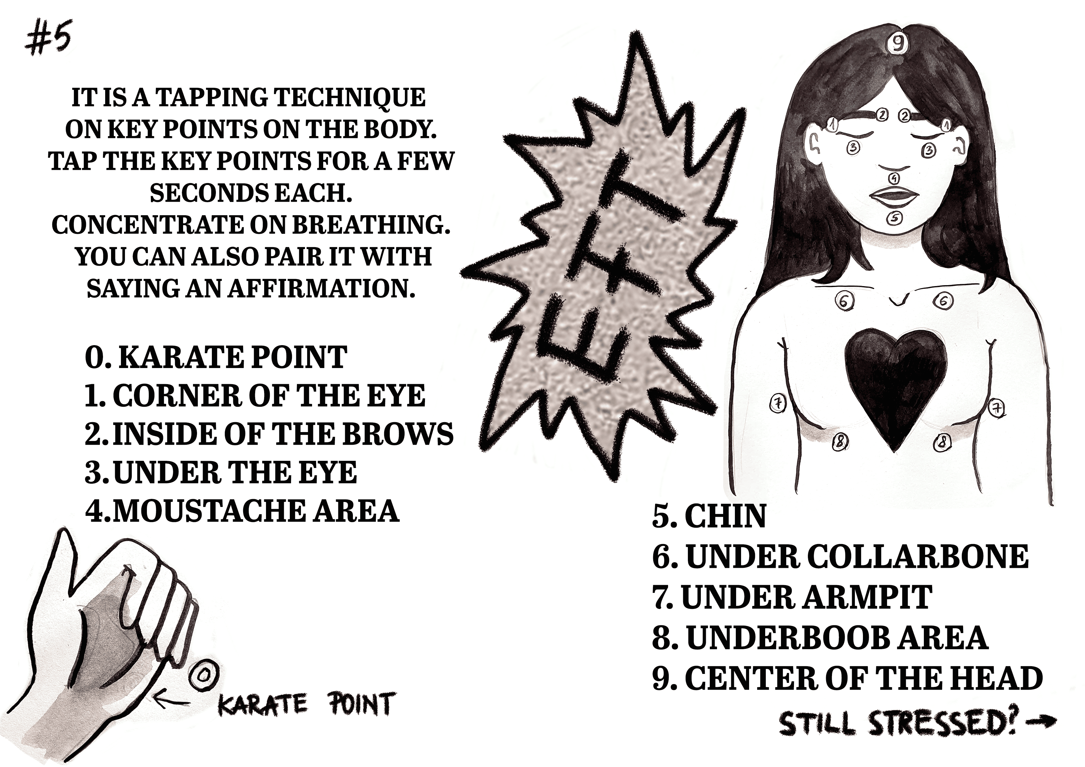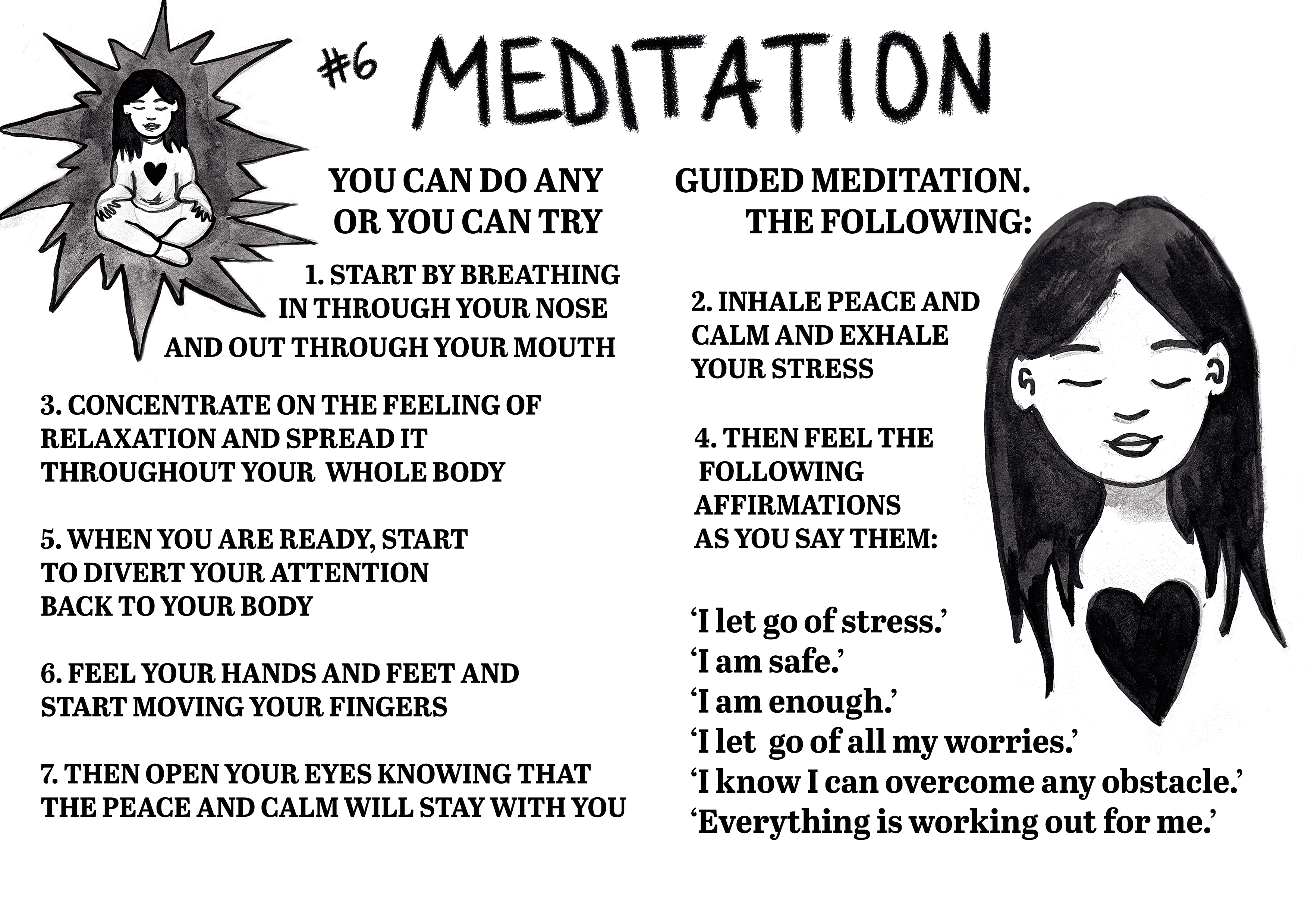 I have been interested in mental health and mindfulness practices for the past years. With this zine I decided to document the practices that I use when I feel overwhelmed and stressed and share them with others.
